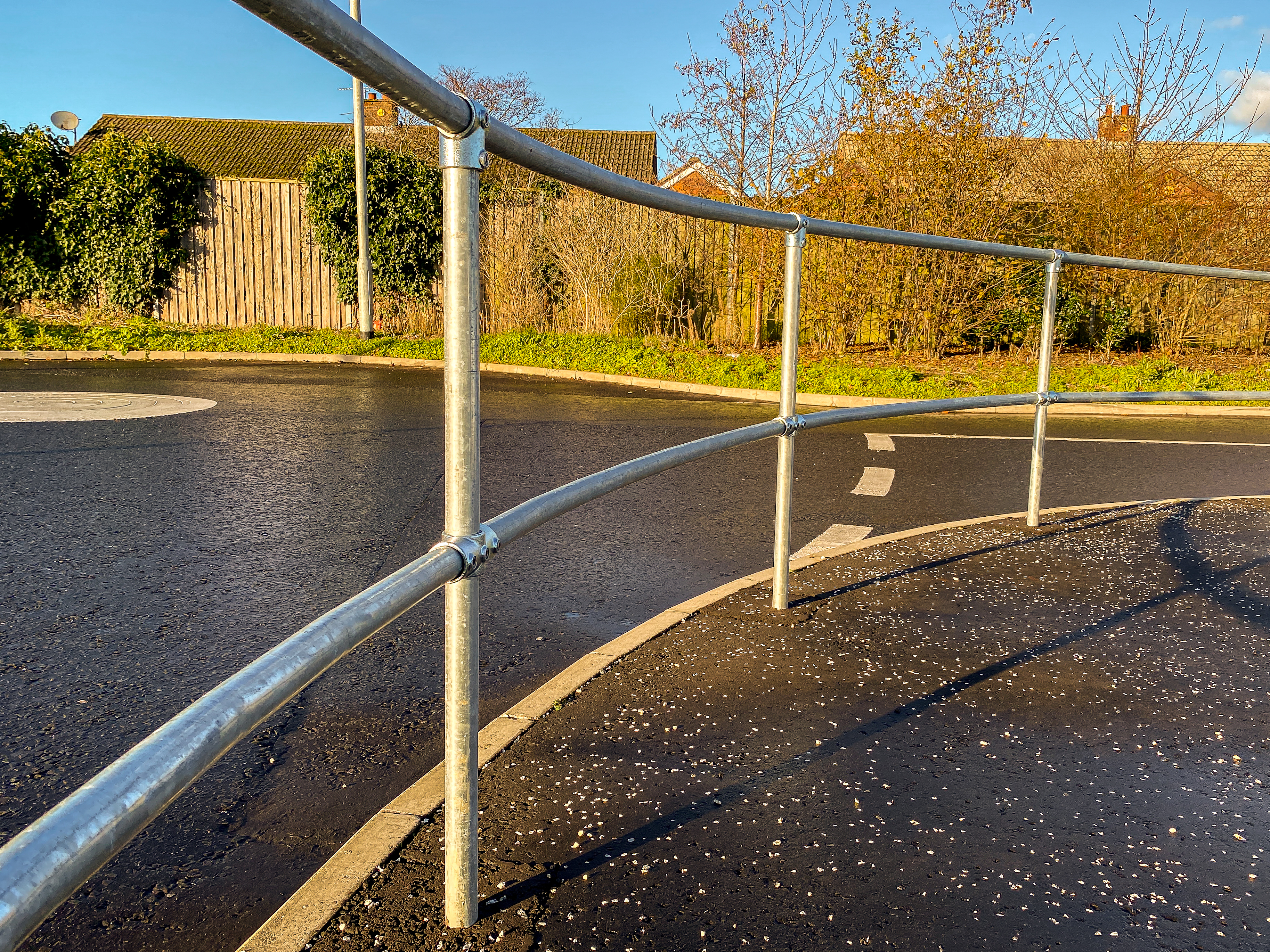 NK can supply and install Tube Clamp handrails & fittings, galvanised to BS EN 1461, TUV certified, meeting specififed loads up to 1500 N/m.